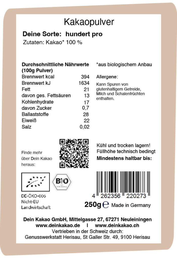100 % Kakaopulver aus kontrolliert biologischem Anbau.